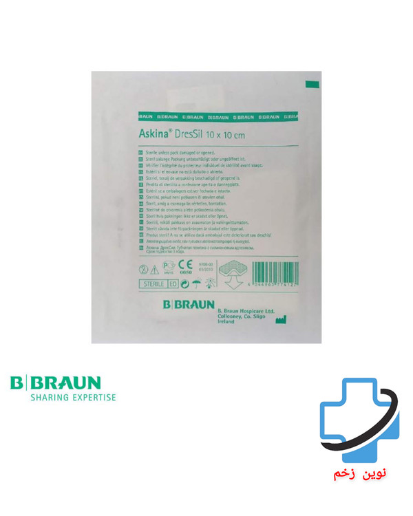 پانسمان فوم سیلیکونی آسکینا درسیل بی بران یک پانسمان خود چسب است که یک سمت آن چسب سیلیکونی نرم و در سمت دیگر یک فیلم ضد آب قابل نفوذ در برابر بخار می باشد. این پانسمان ظرفیت جذب بالای فوم را با چسب سیلیکونی نرم که در تماس با زخم می باشد ترکیب می کند.