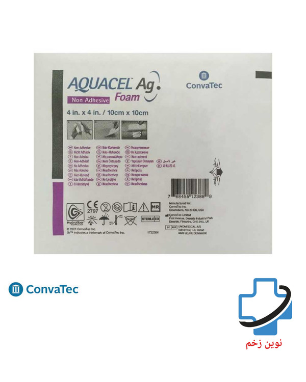 پانسمان فوم نقره دار آکواسل کانواتک برای پوشش و بهبود زخم ها از نقره یونی و فوم، که قابلیت ضد باکتری داشته و باعث کشته شدن میکروب ها می شود و مانع عفونت زخم میگردد استفاده می کند.